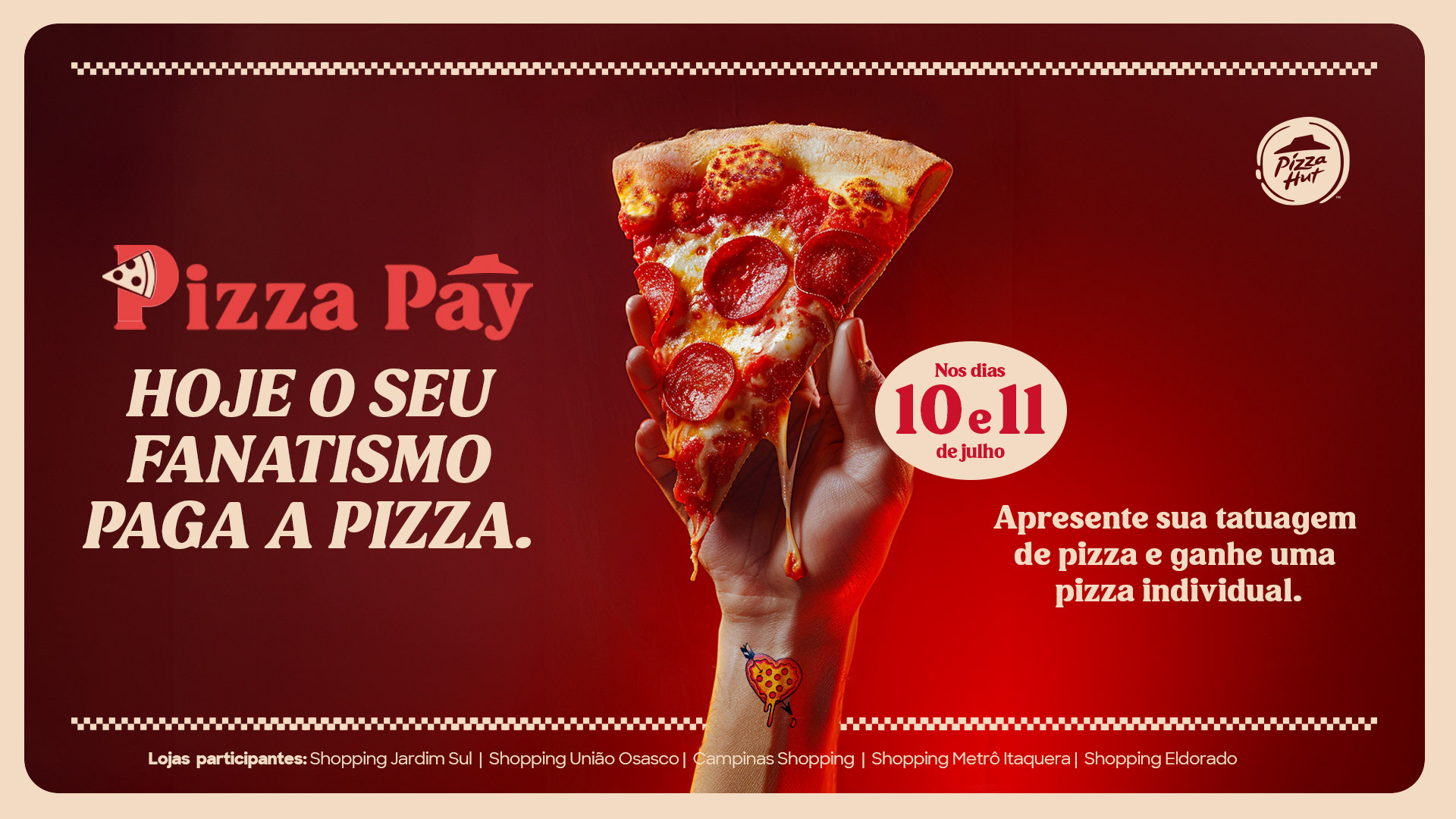 A promotional campaign that celebrated Pizza Day in a fun and unconventional way: anyone with a pizza tattoo got a free pizza. The action strengthened fans’ love for the brand and generated high engagement on social media. Development of key visual, in-store materials, and activation concept with influencers and tattoo artists. 🏆 Winner of the BEX Awards in the “Special Dates” category.